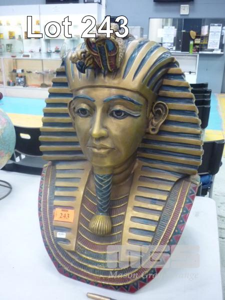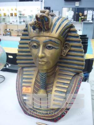 CAST BRASS BUST, DEPICTING PHARAOH, POLYCHROME DECORATED, 65cm (H)