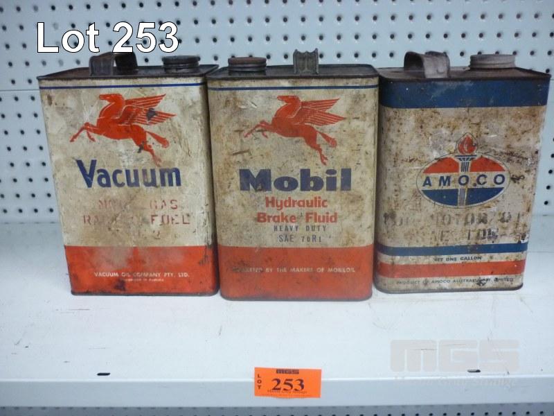 3 x PETRONILLA, 1 IMP PINT OIL TINS, VACUUM, MOBIL, AMOCO