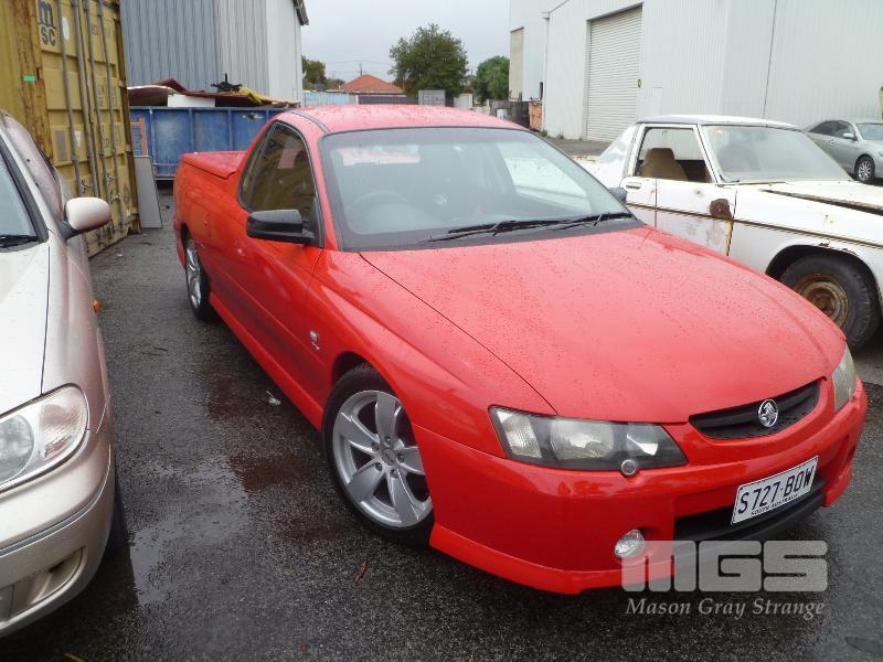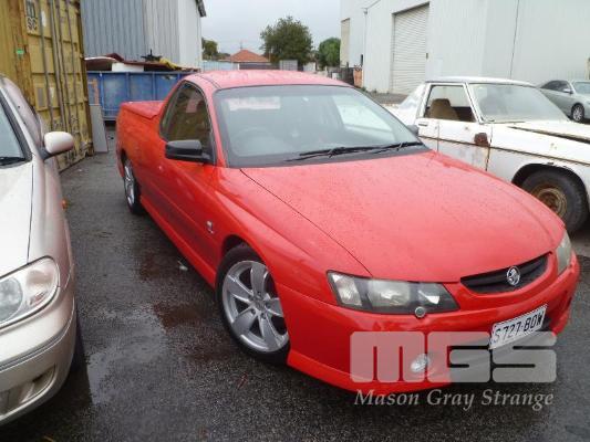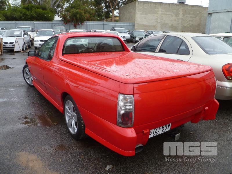 2003 HOLDEN VY STORM UTILITY REG: S727BOW (SA) (EXPIRED) VIN: 6G1YK42A53L139081 ENG: VA447878 ODO: 300783 3.8 LTR V6, 5 SPEED MANUAL, PETROL, RED, 2 DOORS, 2 SEAT, ABS, AIR BAG, AIR CON, ALLOY WHEELS, CD PLAYER, CENTRAL LOCKING, FOG LAMPS, POWER STEERING, POWER WINDOWS, TONNEAU COVER, TOW BAR, HARD TOP (WITH PAPERS, WITH 1 KEY/S, WITH OWNER'S MANUAL, WITH SERVICE BOOKS) CONDITION: FRONT BUMBER, DRIVERS SIDE - SCRATCH