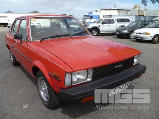 1982 TOYOTA COROLLA CS SEDAN REG: UFJ233 (SA) (EXPIRED) VIN: KE70E-9007400 ENG: 4K9057529 ODO: 239,925 4 CYLINDER, 3 SPEED AUTO, PETROL, RED DUCO, 4 DOORS, 5 SEAT, AIR CON, POWER STEERING, SPARE WHEEL (WITH PAPERS, WITH 1 KEY/S, WITH OWNER'S MANUAL, NO SERVICE BOOKS)