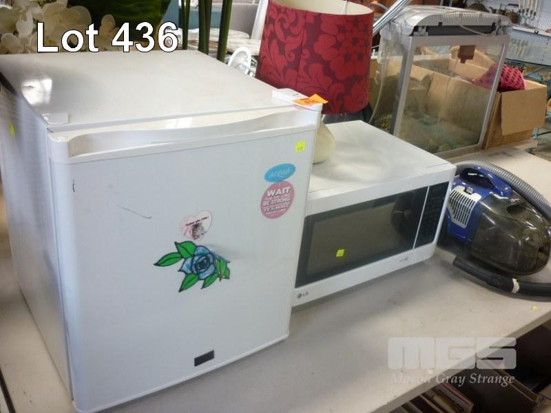 ACQUA 47 LITRE UNDERBAR FRIDGE/FREEZER, LG MICROWAVE, VACUUM CLEANER & TABLE LAMP
