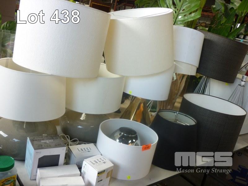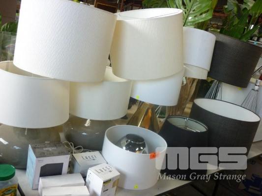ASSORTED TABLE LAMPS, LAMP SHADES, GLOBES ETC (1 x TABLE)