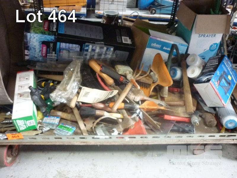 ASSORTED HAND TOOLS, GARDEN TOOLS ETC