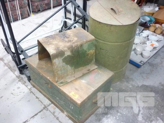 TUB OF WELDING ACCESSORIES, TIMBER TOOL BOX & CONTENTS OF VINTAGE TOOLS & ACCESSORIES
