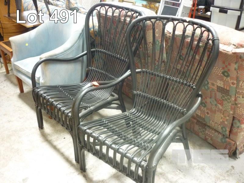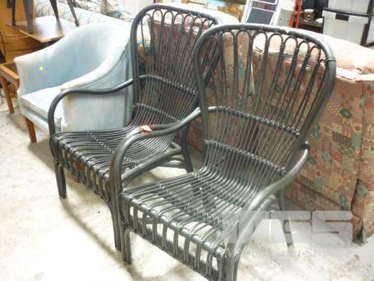 PAIR CANE ARMCHAIRS, BLACK, REPAINTED