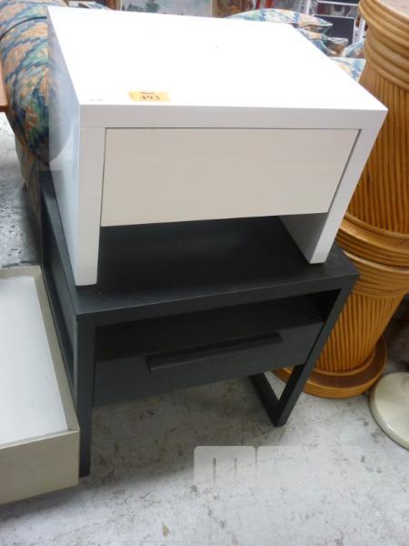 CHOCOLATE WOODGRAIN LAMINATE SINGLE DRAWER BEDSIDE CABINET & WHITE 2 PACK PAINTED BEDSIDE
