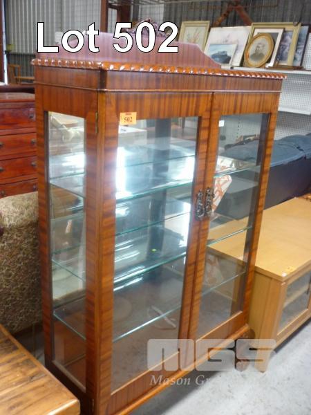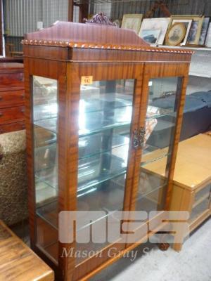 CHINA DISPLAY CABINET, 2 DOOR, MIRROR BACK, 3 x GLASS SHELVES (REPRODUCTION)