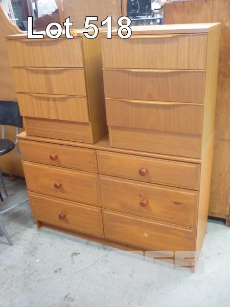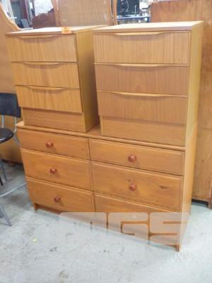 TIMBER 6 DRAWER CHEST & PAIR OF TEAK LAMINATE BEDSIDE CABINETS