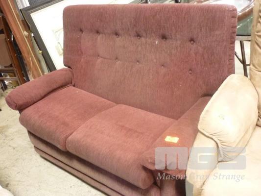 MAROON FABRIC UPHOLSTERED 2 SEATER SOFA