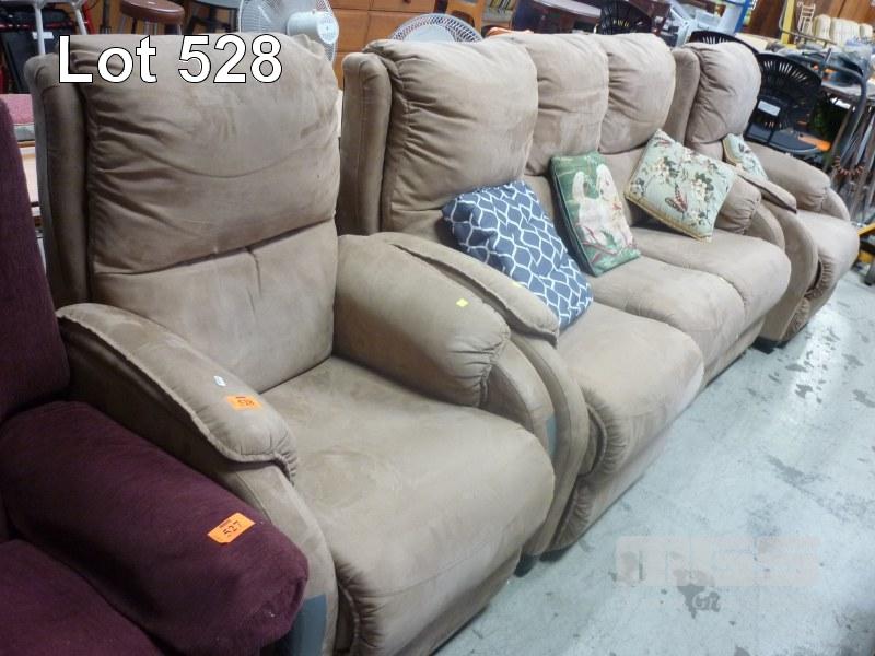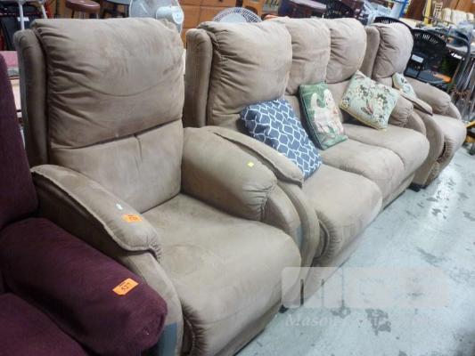 BEIGE FABRIC 3 PIECE LOUNGE SUITE, 3 SEATER LOUNGE & 2 x RECLINERS (1 x ALL FAULTS)