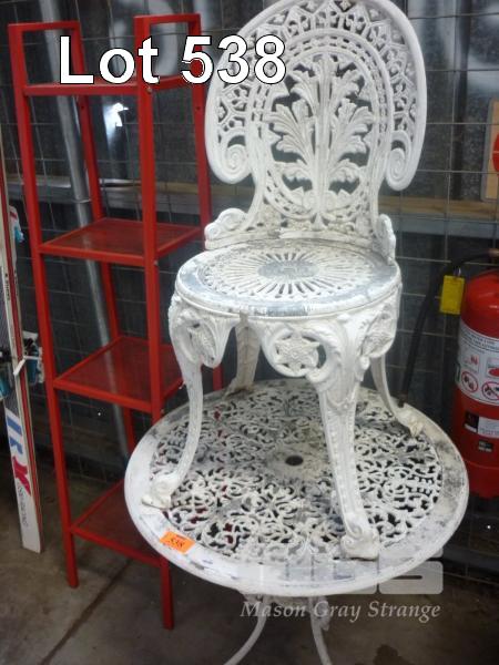 CAST ALLOY TABLE, CHAIR & STEEL PLANT STAND