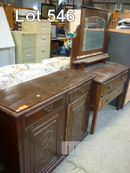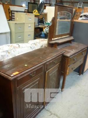 TIMBER DRESSER, 2 DRAWER, HALF MIRROR & TIMBER CABINET, 2 DOOR/DRAWER