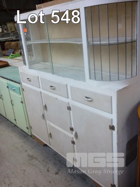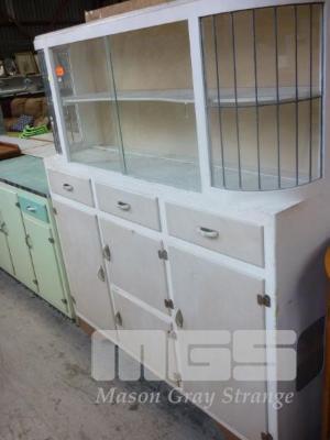 ART DECO STYLE KITCHEN CABINET, LEADLIGHT CORNERS, GLASS SLIDING DOORS, 4 DOOR/2 DRAWER