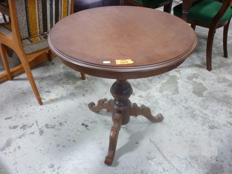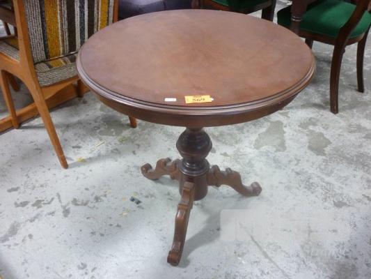 POLISHED TIMBER ROUND SIDE TABLE, SINGLE PEDESTAL