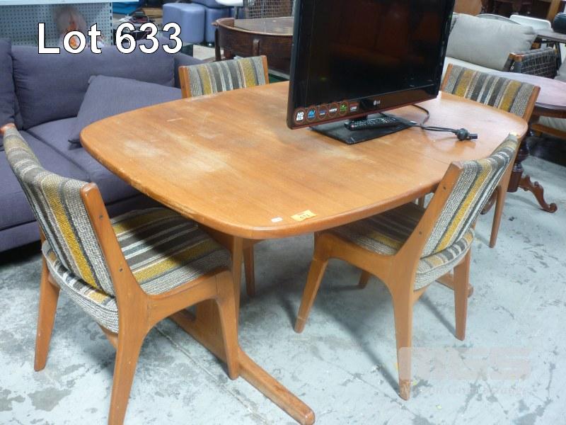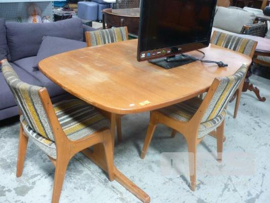 TIMBER 5 PIECE DINING SUITE, RECTANGULAR EXTENSION TABLE & 4 x FABRIC CUSHION CHAIRS