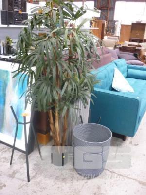 LARGE CONCRETE POT, POT STANDS & ARTIFICIAL PLANTS