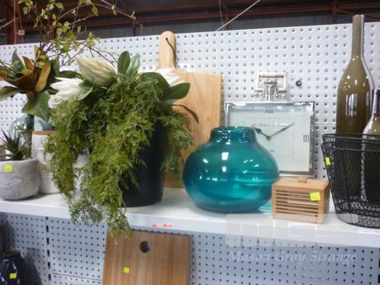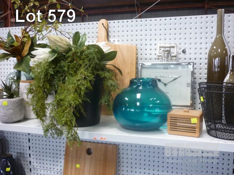 ASSORTED VASES, ARTIFICIAL PLANTS, CLOCK ETC