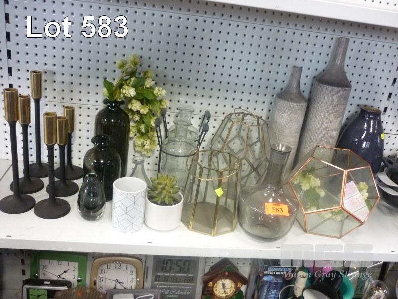 ASSORTED VASES, CANDLE HOLDERS ETC