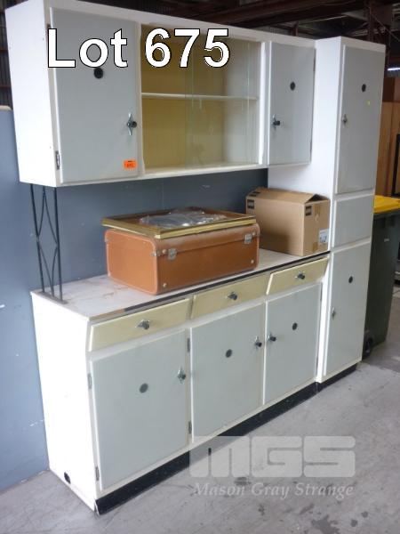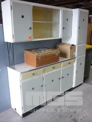 WHITE PAINTED, TIMBER, KITCHEN CABINET, 8 DOORS, 3 DRAWER, 2 GLASS SLIDING DOORS
