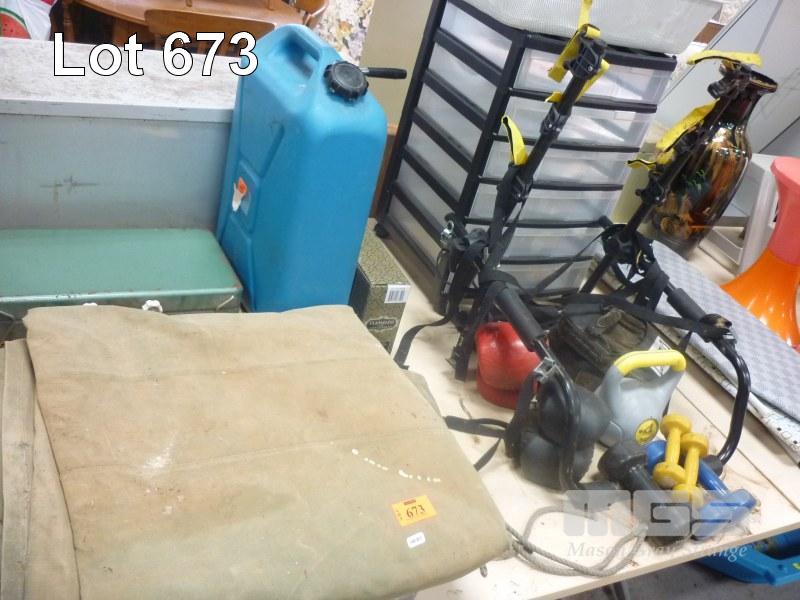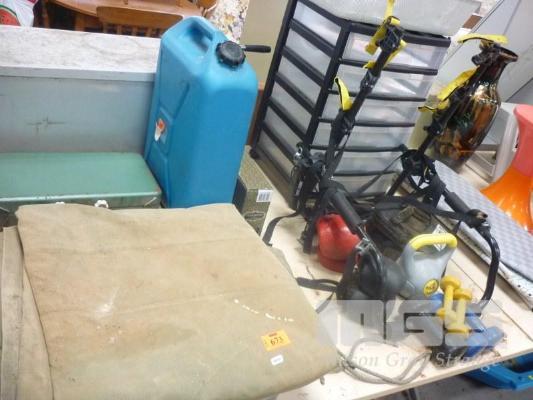CAMPING & SPORTING GEAR, TARPS, TABLES, BIKE CARRIER & STORAGE CONTAINERS