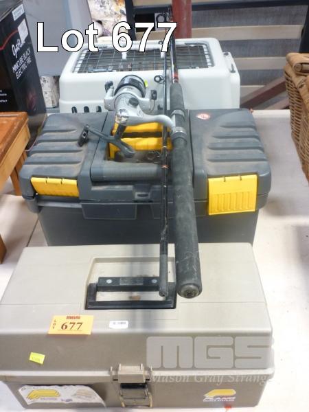 TACKLE BOX, ROD/REEL, TOOLBOX WITH GARDEN ACCESSORIES & PET CARRIER