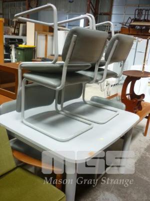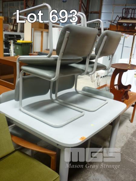 GREY LAMINATE 7 PIECE DINING SUITE, METAL FRAMED, RECTANGULAR EXTENSION TABLE & 6 x SKID CHAIRS