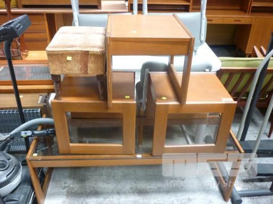 GLASS TOP COFFEE TABLE, SET OF 3 x SIDE TABLES & FOOT REST