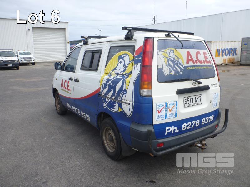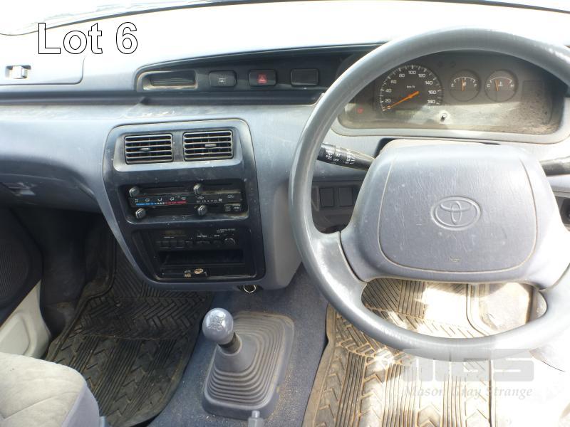 1998 TOYOTA KR40 TOWNACE SWB VAN 4x2 REG: S517 AYT (SA) VIN: JT721KR4200021845 ODO: 265,360 kms INDICATED 5 SPEED MANUAL, Unleaded, WHITE DUCO, 3 DOORS, 2 SEAT, 4x2 AIR CON, POWER STEERING, ROOF RACKS, TOW BAR, KEY #36 (NO PAPERS, WITH 1 KEY/S, NO OWNER'S MANUAL, NO SERVICE BOOKS) CONDITION: OVERALL - POOR