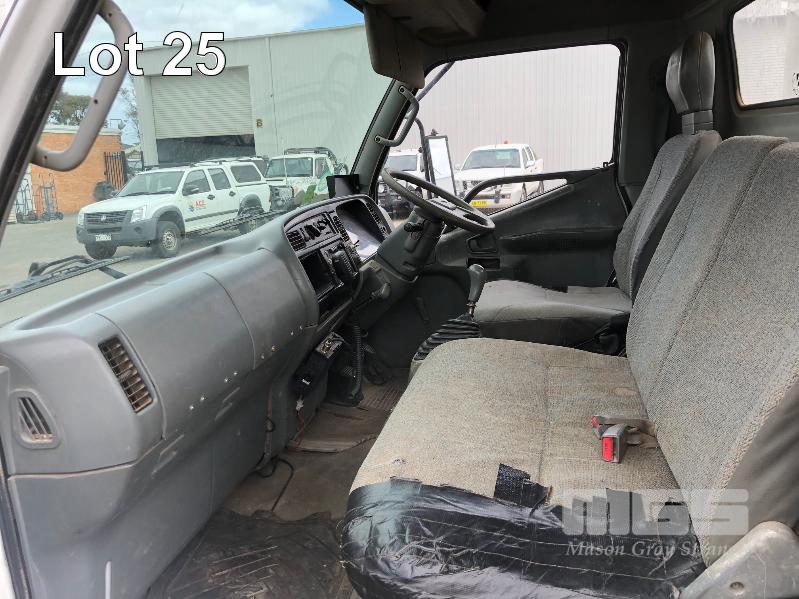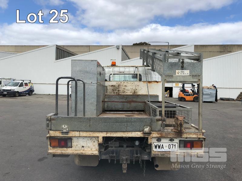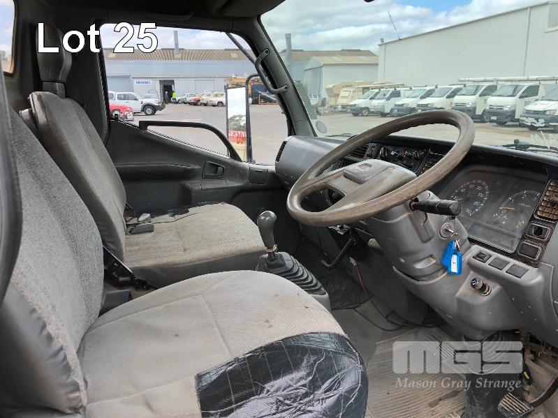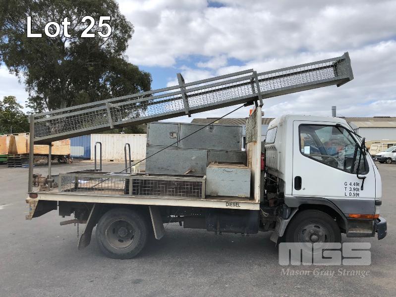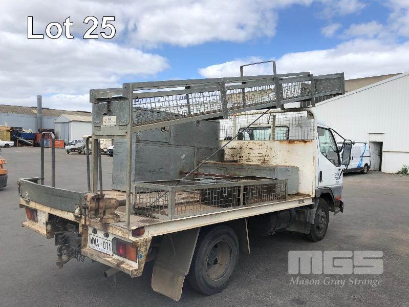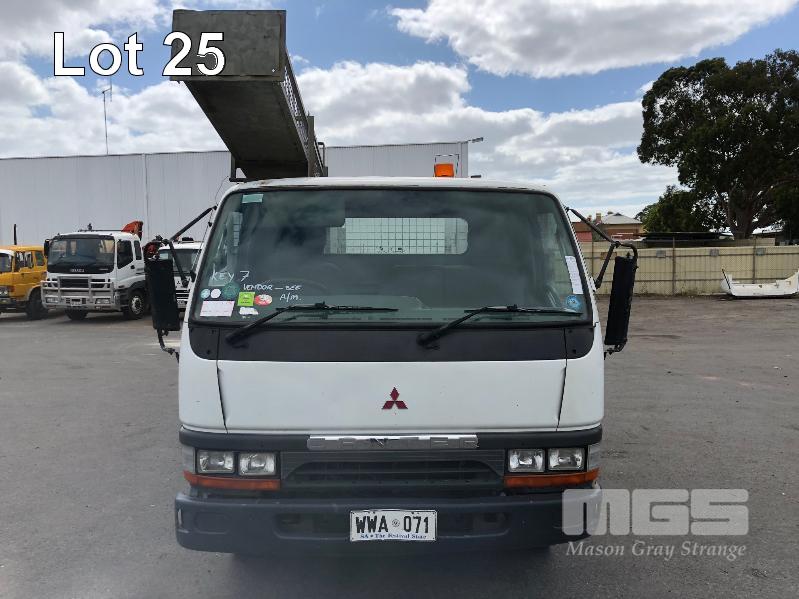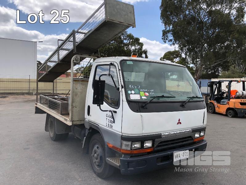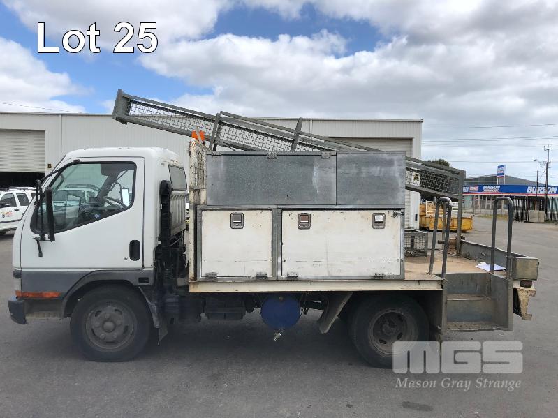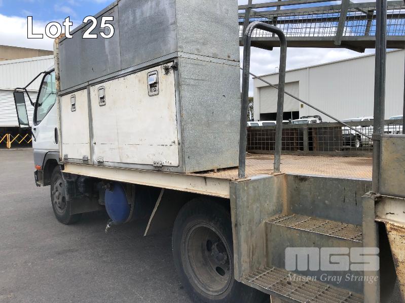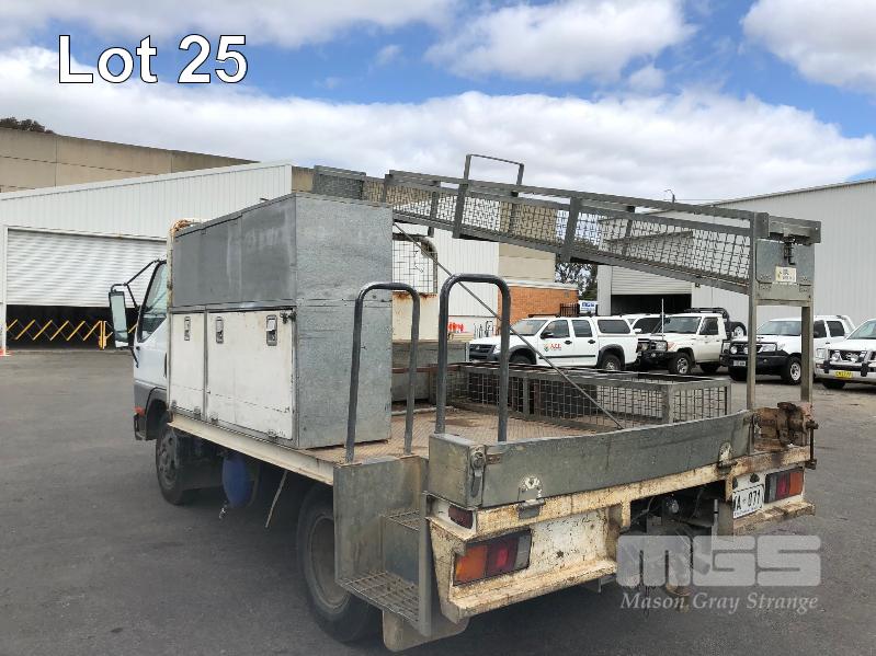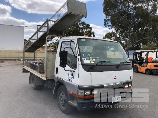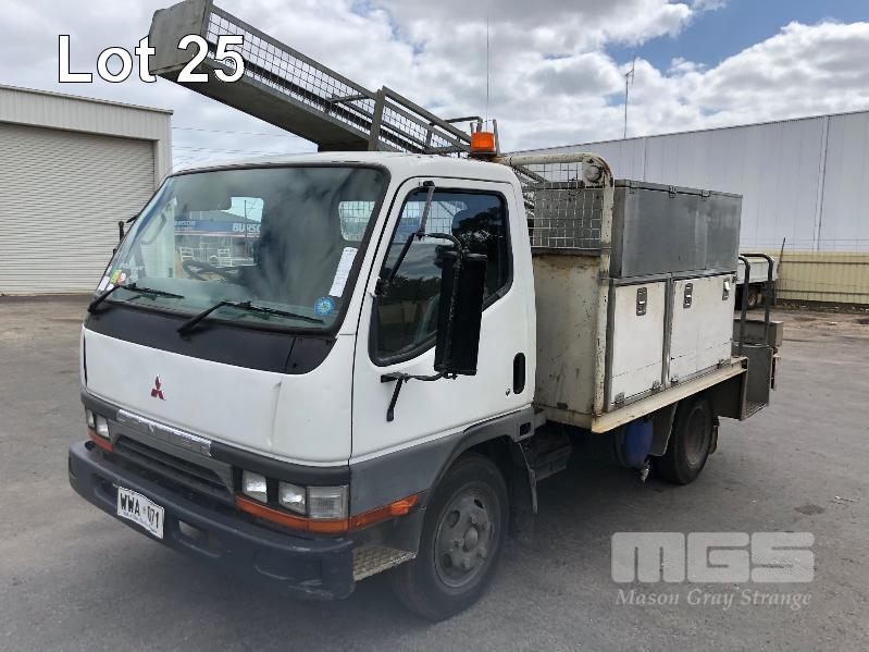 1996 MITSUBISHI CANTER 4x2 CAB CHASSIS REG: WWA 071 (SA) VIN: 6F6E4EL7DTT000227 ODO: 324,127kms INDICATED GVM: 4,495 LENGTH: 16' WIDTH: 7' 5 SPEED MANUAL TRANSMISSION, DIESEL, SPRING SUSPENSION, WHITE, R 16" 2 DOORS, 3 SEAT, AIR CON, CB RADIO, STEEL RIMS, TOOLBOXES, TRADESMAN FITOUT, HAND WASH WATER TANK KEY #7 (NO PAPERS, WITH 1 KEY/S, WITH OWNER'S MANUAL, WITH SERVICE BOOKS)