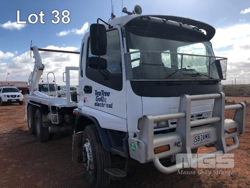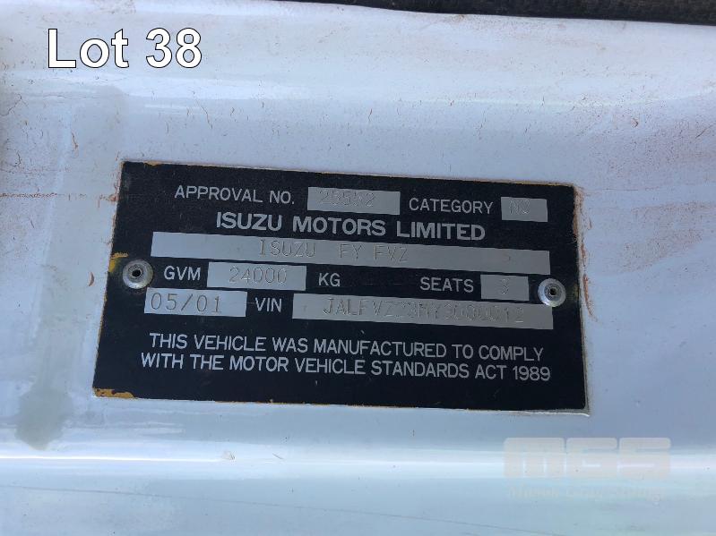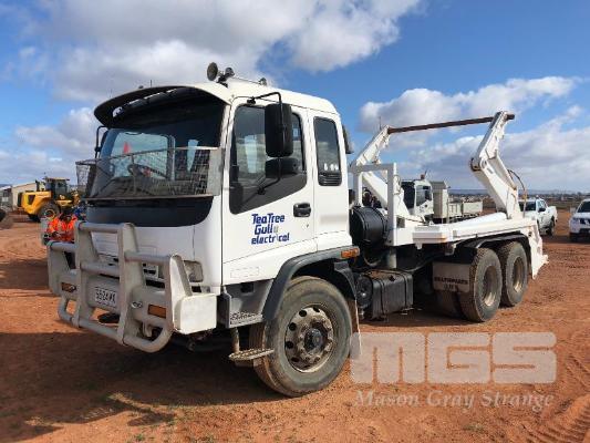 2001 ISUZU FY FVZ 6x4 BIN LIFT/REEL OUT TRUCK REG: SB 24 MX VIN: JALFVZ23MY3000012 ENG: 6SD1735902 ODO: 693,832kms INDICATED 9 SPEED TURBO DIESEL, PTO CONTROLLED CABLE REEL OUT, 15 TONNE APPROX KEY #27 (LOCATED AT PORT AUGUSTA) (NO PAPERS, NO OWNER'S MANUAL, NO SERVICE BOOKS)