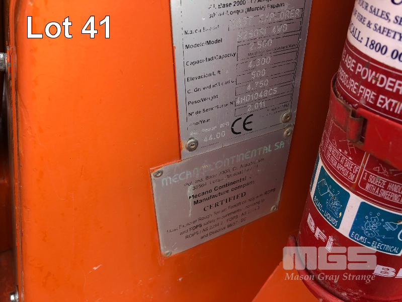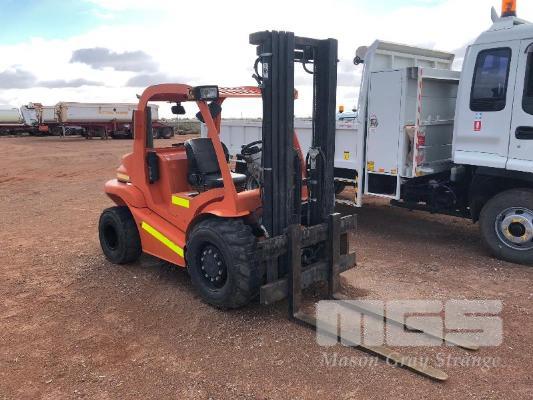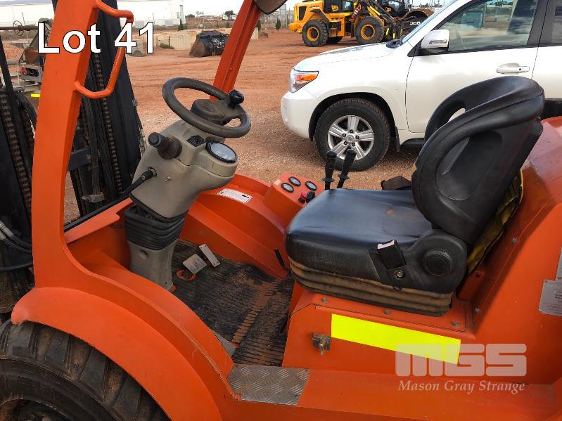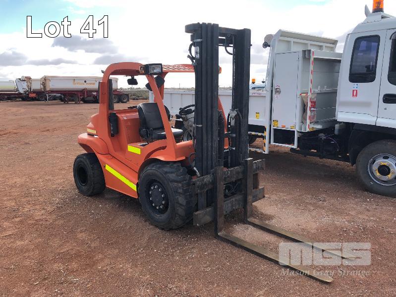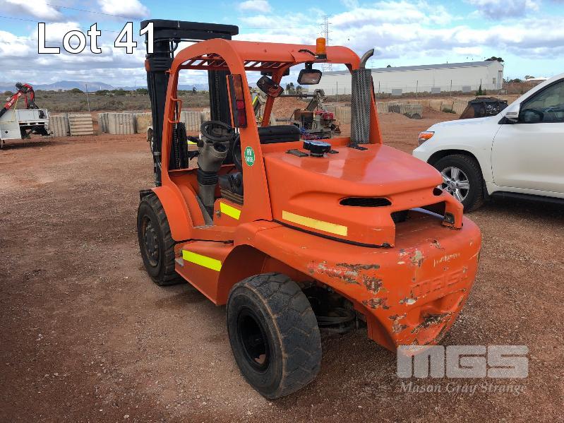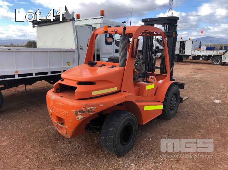 2011 MECAN MAST EXPLORER H25DSI 4WD MAST ALL TERRAIN FORKLIFT PLANT NO: HV0055 HOURS: 2,717 HOURS INDICATED CAPACITY: 2,500kg HEIGHT: 4,300mm MAX POWER SHIFT AUTOMATIC, DIESEL, 3 STAGE CONTAINER MAST (LOCATED AT PORT AUGUSTA) (NO PAPERS, NO OWNER'S MANUAL, NO SERVICE BOOKS)