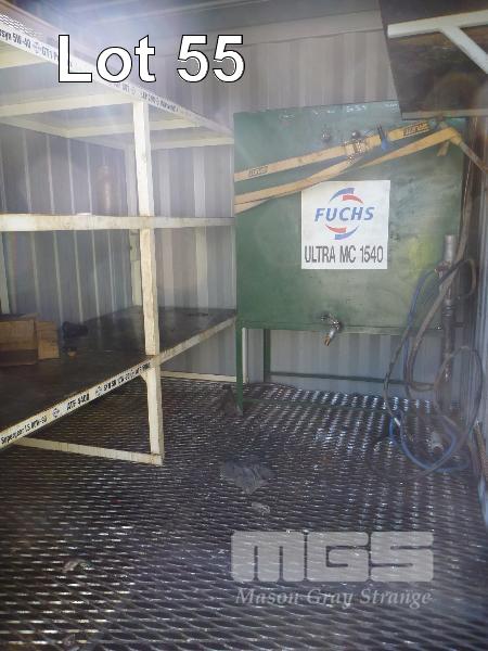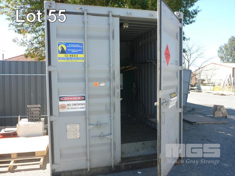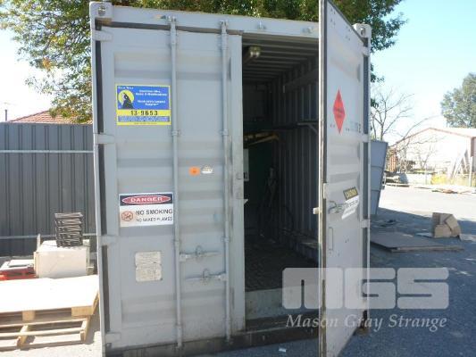 10' BUNDED SHIPPING CONTAINER WITH SHELVING & OIL TANK