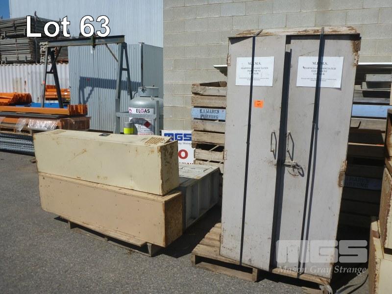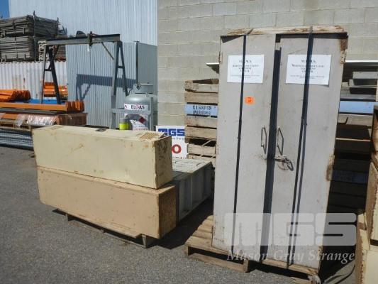 2 DOOR STEEL CABINET & 3 x ASSORTED PERSONAL LOCKERS
