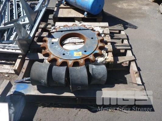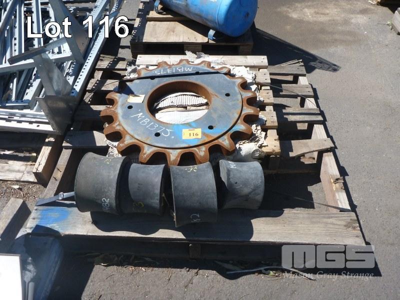 ASSORTED MACHINE PARTS INCLUDING COGS, IDLERS, CLUTCH, ETC, 3 x PALLETS