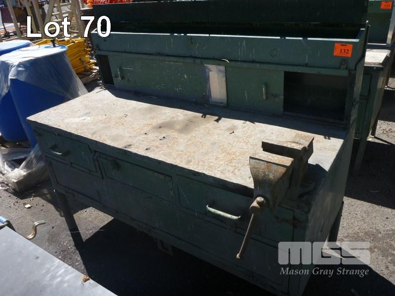 WORK BENCH, 2 x DRAWER, 1 x DOOR, SLIDE DOOR HATCH, 170 x 80cm WITH RECORD NO.5 VICE