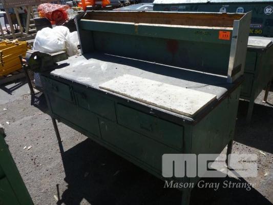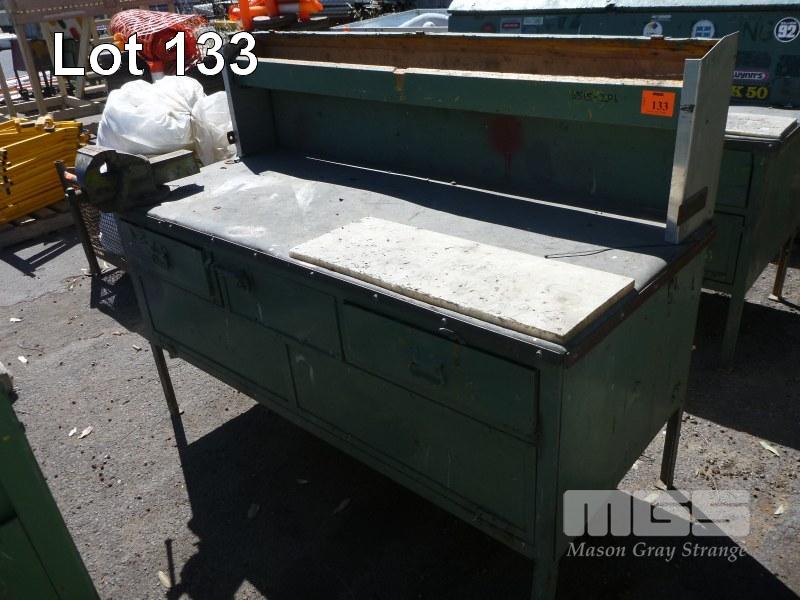 WORK BENCH, 2 x DRAWER, 1 x DOOR, HUTCH, 175 x 80cm WITH RECORD NO.5 VICE