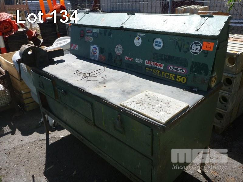 WORK BENCH, 2 x DRAWER, 1 x DOOR, HUTCH, 175 x 80cm WITH RECORD NO.6 VICE