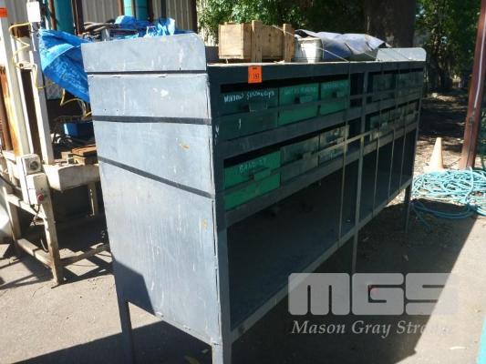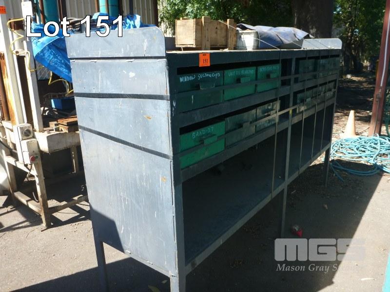 STEEL SHELF UNIT, 2 BAY, 3 TIER WITH PARTS BINS, 245 x 60 x 150cm (H)