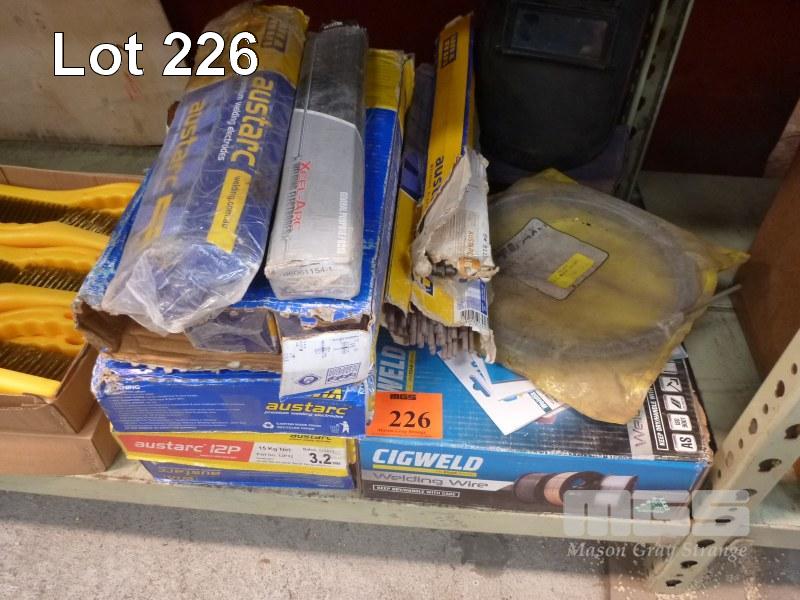 ASSORTED WELDING SUNDRIES INCLUDING MIG WIRE, ELECTRODES, MASK & GLOVES