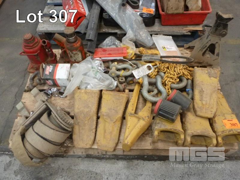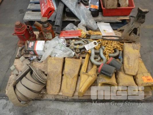 CAT BUCKET TEETH, BOTTLE JACKS, CHAIN, SHACKLES, ETC, 1 x PALLET