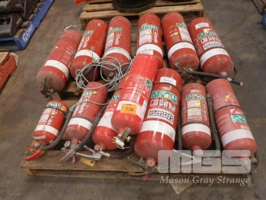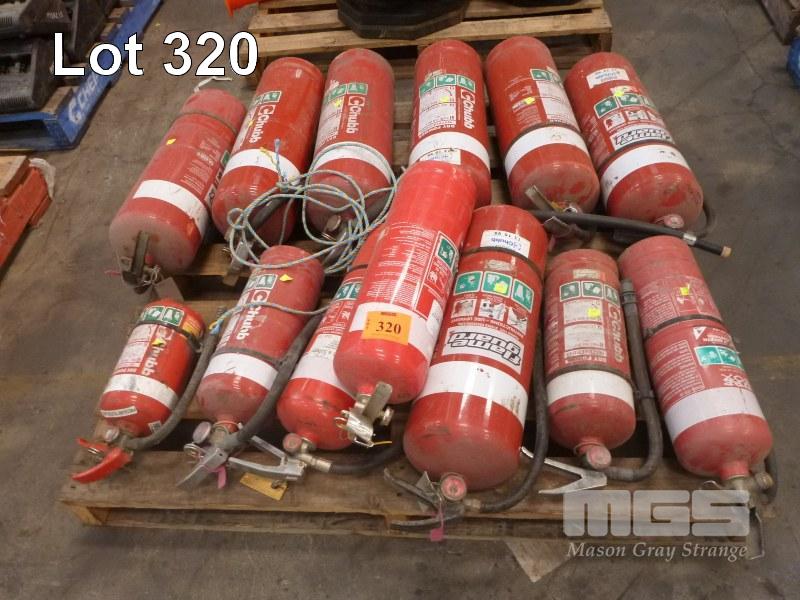 12 x FIRE EXTINGUISHERS, DRY POWDER, 2.5kg TO 9kg