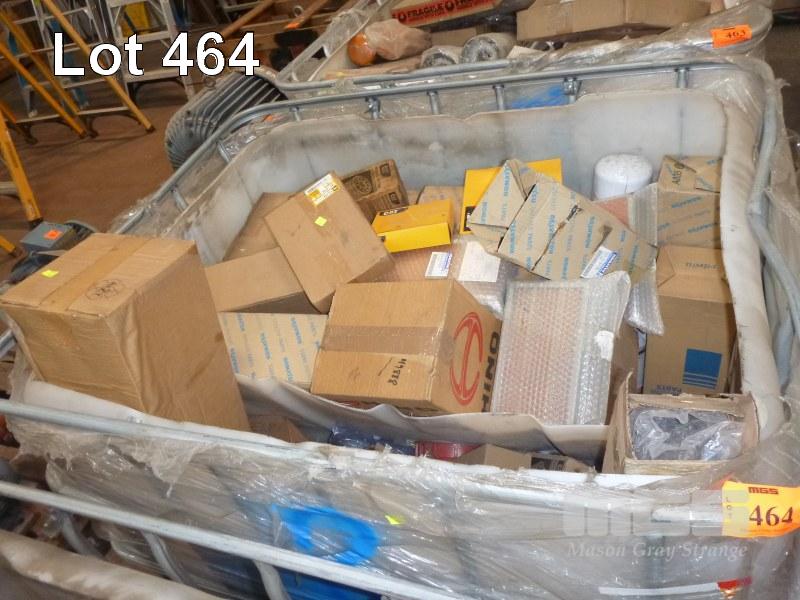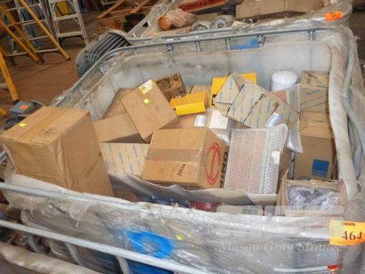 STILLAGE & CONTENTS, ASSORTED AIR & OIL FILTERS & BEARINGS, CAT, KOMATSU & HINO