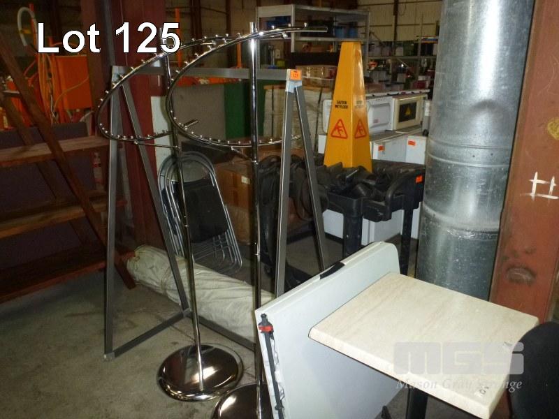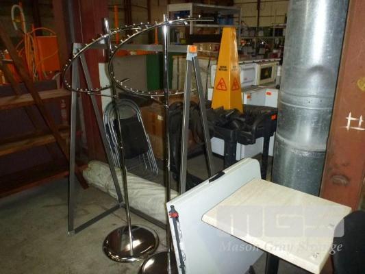 3 x ASSORTED CLOTHES RACKS, FOLDING TABLE & CHAIR
