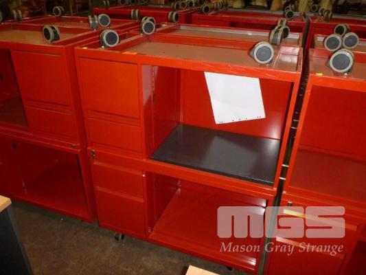 2 x MOBILE CREDENZAS, 2 DRAWER, 100cm, RED STEEL