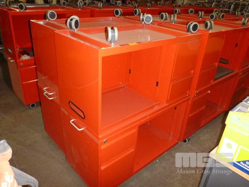 2 x MOBILE CREDENZAS, 2 DRAWER, 100cm, RED STEEL