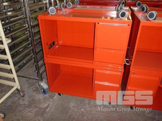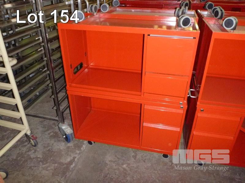 2 x MOBILE CREDENZAS, 2 DRAWER, 100cm, RED STEEL