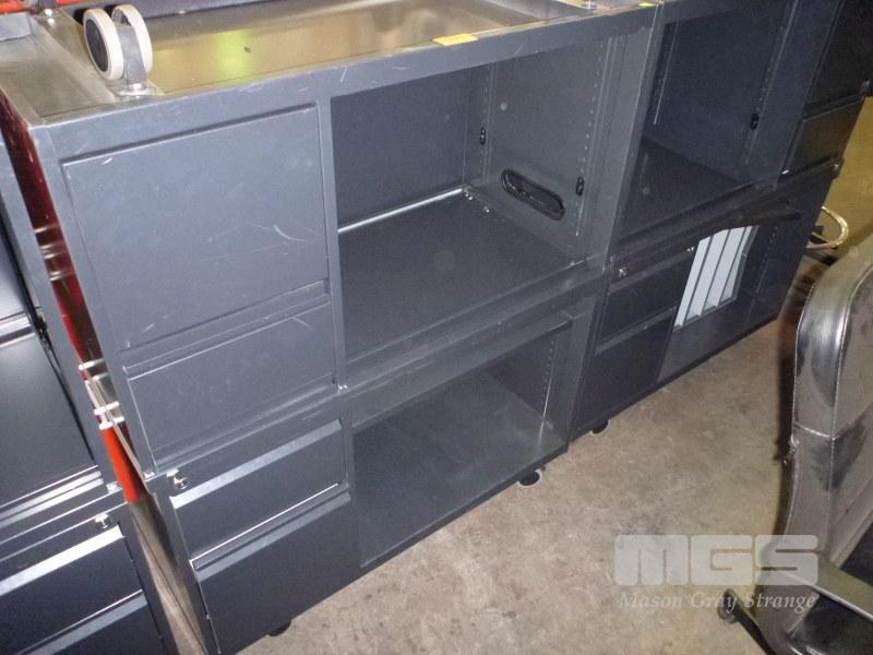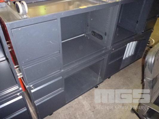 2 x MOBILE CREDENZAS, 2 DRAWER, 100cm, CHARCOAL STEEL