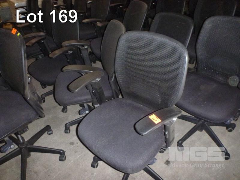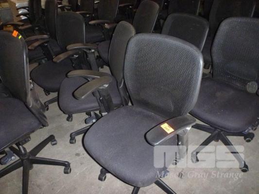 6 x GAS LIFT ARMCHAIRS, BLACK FABRIC SEAT, MESH BACK