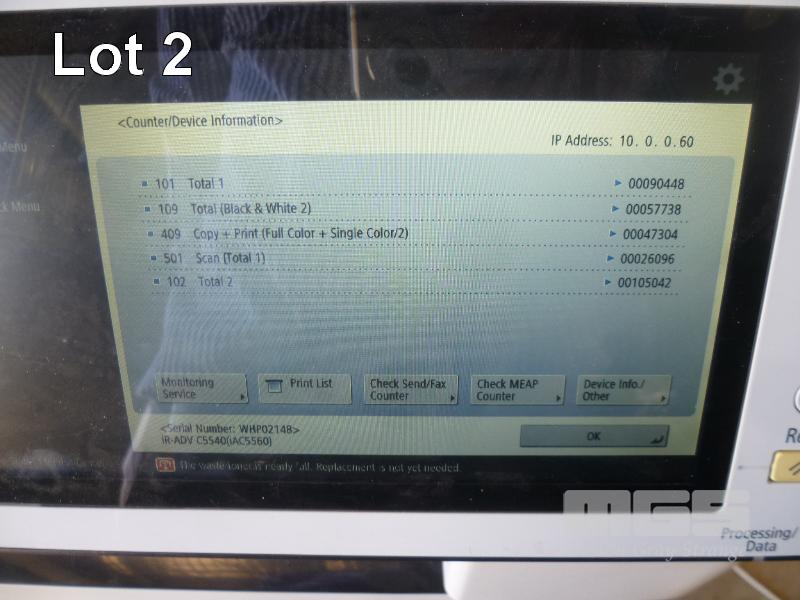 PHOTOCOPIER, CANON imageRUNNER ADVANCE C5540i COLOUR DIGITAL, ADF, PRINTER USB & NETWORK, 47,304 COLOUR & 57,738 B&W COPIES SHOWING (TEST PAGE ATTACHED) S/N:WHP02148