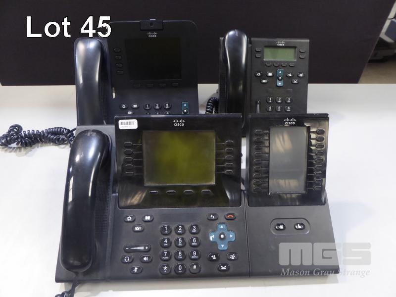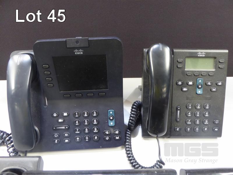 50 x CISCO CP-6945 UNIFIED IP PHONES (INC. 6 x UNUSED IN BOX), 7 x CISCO CP-8945 UNIFIED IP PHONES, 1 x CISCO CP-8961 UNIFIED IP PHONE, CP-8961-C-K9 V04 WITH KEY EXPANSION MODULE CP-CKEM-CV01